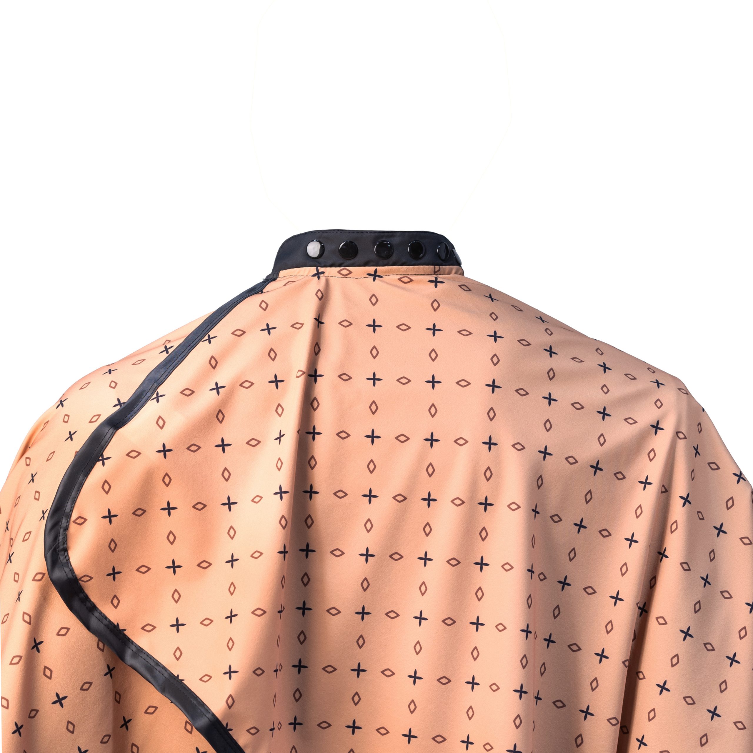 Capa elaborada en tela antifluido tipo fit, con un peso de 118 gramos y una composición del 12% en spandex. Cuenta con cuello tipo camisa y ajuste de tamaño hasta 36 puntos. Los acabados laterales en antifluido brindan una mejor caída a la prenda, lo que se traduce en mayor confort y comodidad para quien la usa. Además, aporta un toque profesional que realza la imagen de tu servicio. Es fácil de lavar y de secado rápido.